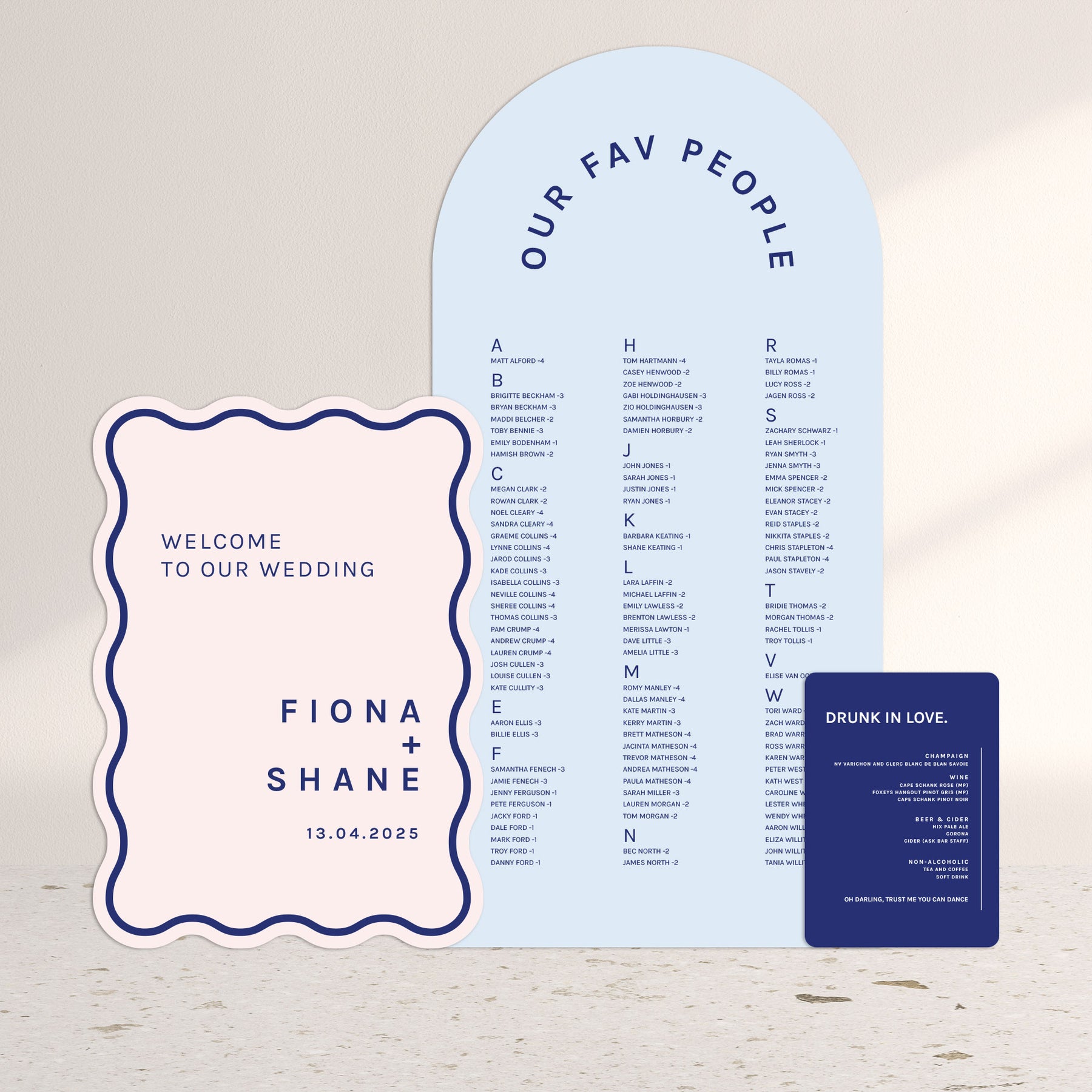 Pick your favourite designs and we’ll personalise each sign with your wording, table arrangements, and bar menu details for a polished, cohesive look.