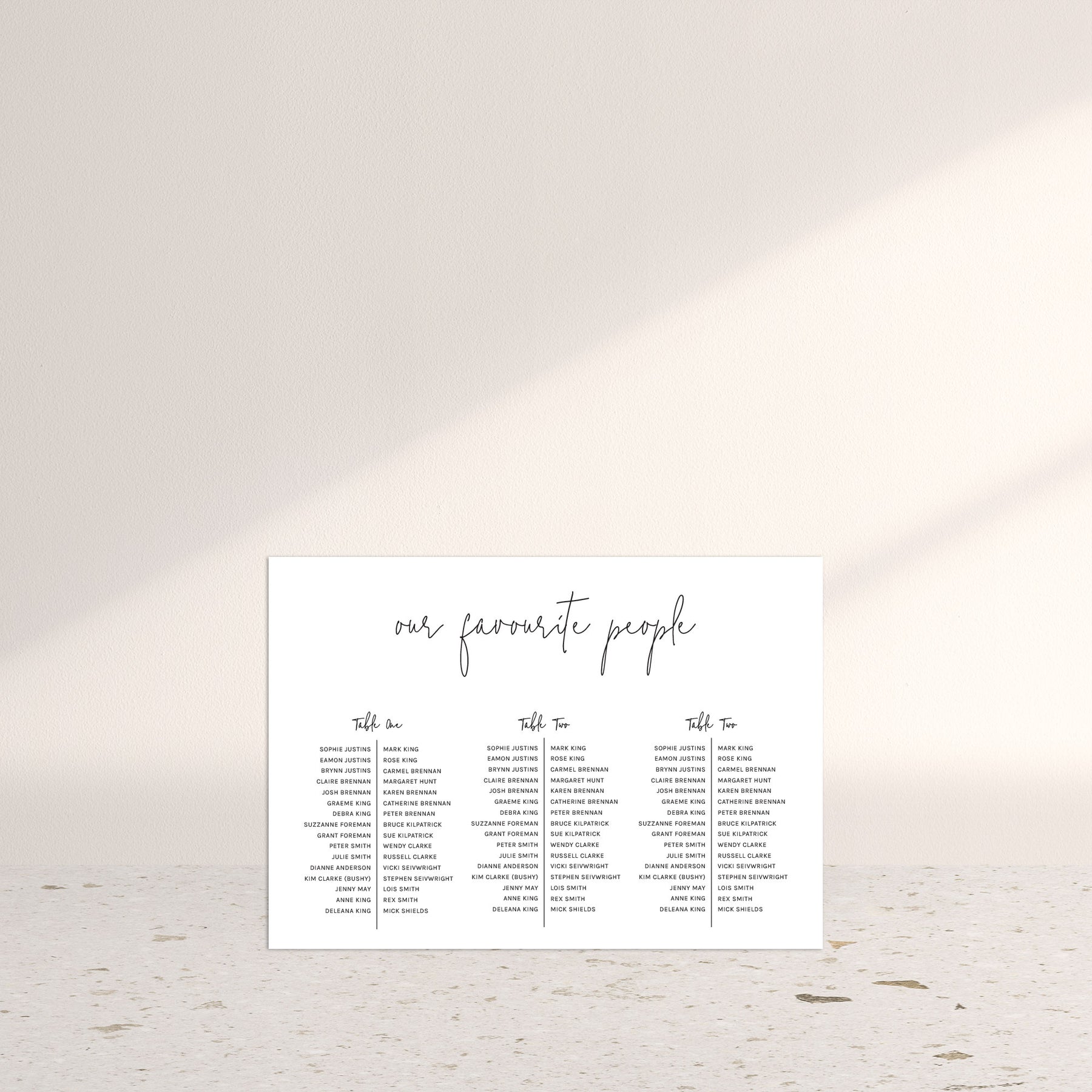 Once you’ve placed your order and sent through your table arrangements, we’ll email you a digital artwork proof. You’ll get two rounds of revisions to make sure everything looks spot on before it goes to print.