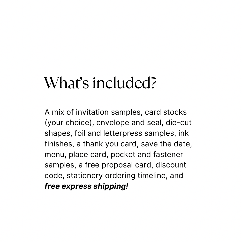 Choosing your wedding invitations can feel overwhelming, especially when deciding online. Our Wedding Invitation Sample Pack lets you see, touch and compare card stocks, colours and print options before placing your full order. This way, you can make confident, stress free stationery choices for your big day.