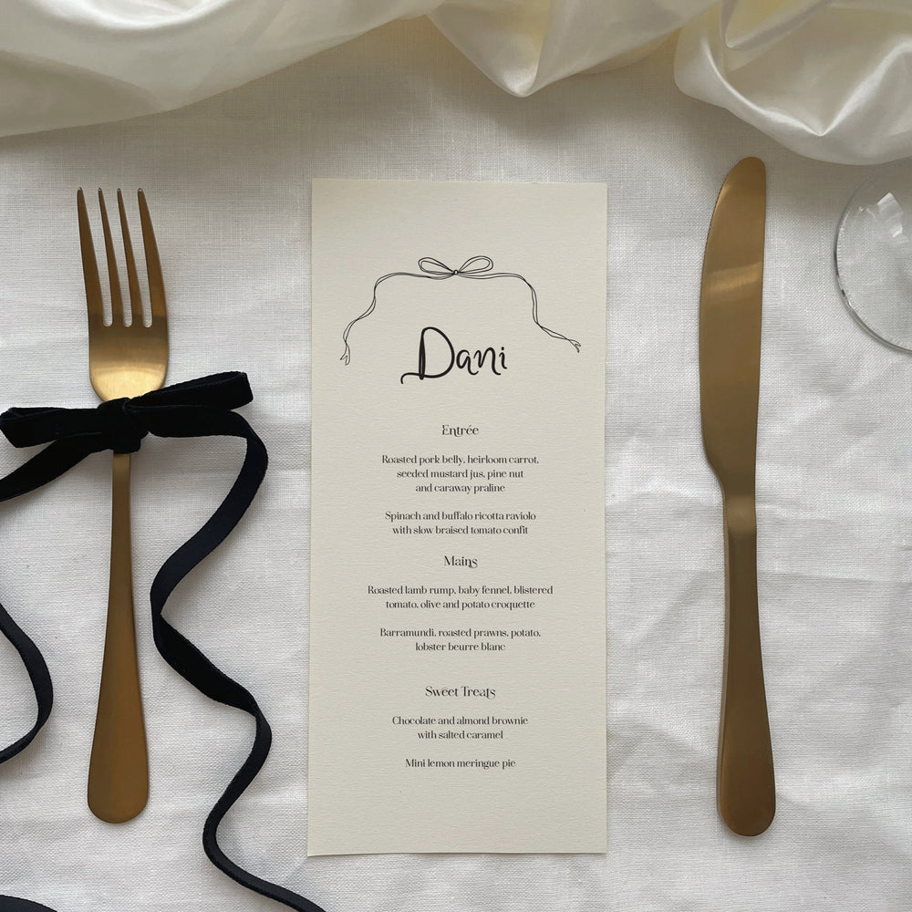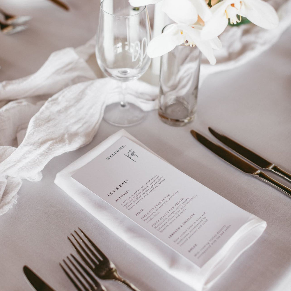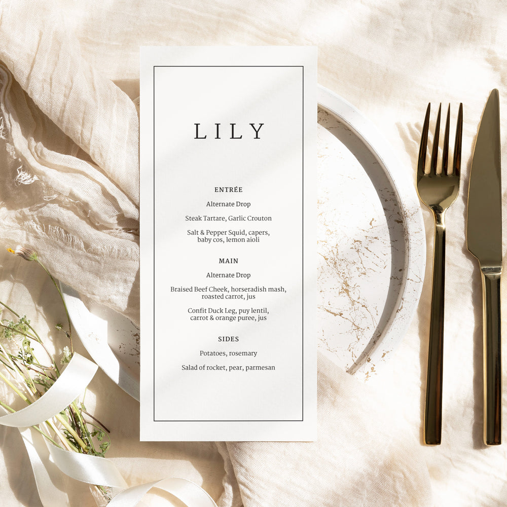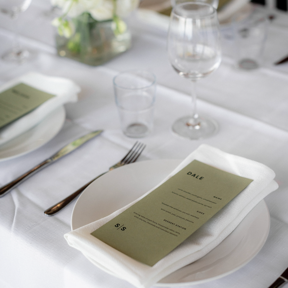 Personalised Guest Menus: Each menu can be printed with a guest's name, doubling as a wedding place card for that extra "wow" factor.